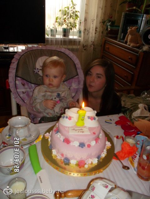 Тортик был красота, девочка-мастер сделала всё как я просила-довольна) Дома было очень холодно-отопление никак не дают, собаки злые, поэтому не удалось на масю одеть красивое прекрасивое платье(((( Приходили гости-родственники, погавкалась со своей теткой-не переношу когда бабки начинают учить меня своему уму разуму, бббрр, никому не позволю давать себе советы о которых я не просила, а так в общем все прошло ХОРОШО!))))))) И небольшой фото-отчет)))