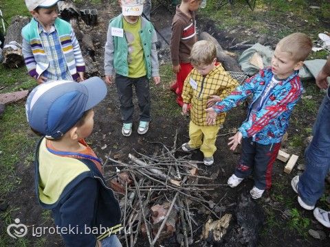 дети с папами разжигали костёр