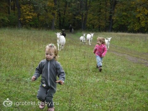вдруг случайно из леса вышли козы и побежали на детей;))