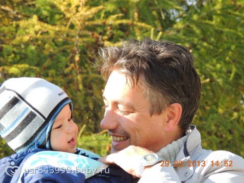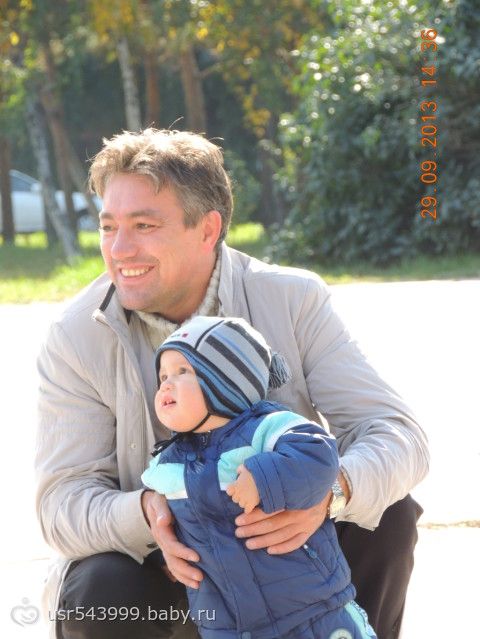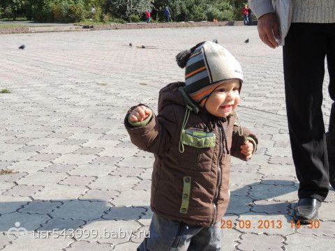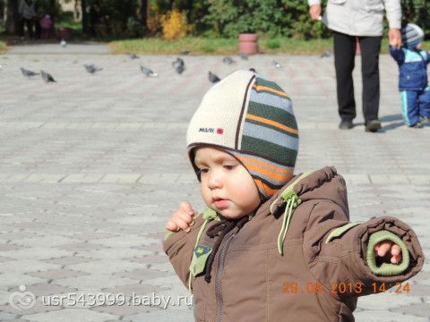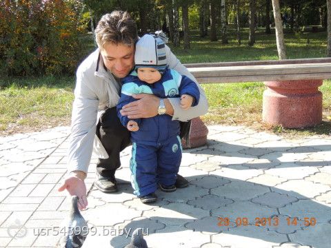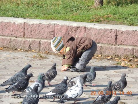 Папа с Никитой кормят голубей...