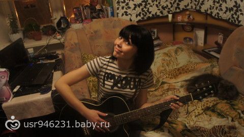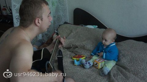 Муж играет на гитаре, поет. Это его хобби. Матвей обожает слушать папочку)