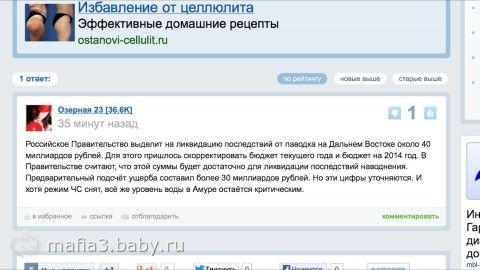 Но больше всего меня возмутила Москва. Пока у людей тонут дома и все нажитое, наша столица гуляет день города.Позор такой стране. Лично мое мнение, что ничего бы не случилось, если бы столица отказалась от празднования Дня города и направила деньги пострадавшим. Как то не ахти получилось, у людей морозы на носу и они на улице, а Москва огромные деньги в воздух спускает