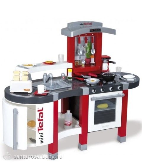 Хочу ребенку на 3-х летие подарить кухню. Прислала нашему папе варианты. В детской комнате в клубе у нас есть кухня, оттуда Варвару не оторвать. Она там что то складывала, раскладывала, перекладывала, готовила и все такое. Очень ей это дело нравилось. Понимаю что подарок не на 1 год, что девочкам нравится подражать, не хочу сильно маленькую, чтобы она могла играть стоя не 1 год, но наш папа встал в позу и сказал что я опять опережаю события. Что она сейчас не оценит всех наворотов навороченной кухни, а когда сможет оценить, то игрушка уже поднадоест. Мне очень понравился вариант от Smoby Tefal. Они шипит, шкаварчит, духовка с подсветкой, и даже раковина с водой. Вот такая: