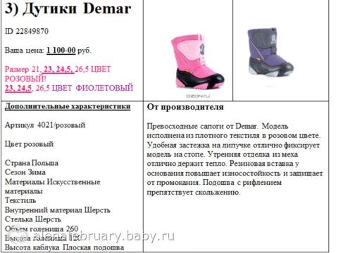на счет размера! Про куому не знаю, скорей всего так же как и в демарах зависит от модели… У каждой модельки свои сантиметры по стельке… Один и тот же размер в разных моделях будет по разному сидеть… К примеру дутики демар за 1100 (на твоей картинке розовые и сиреневые) имеют следующую размерную сетку Размерная сетка: