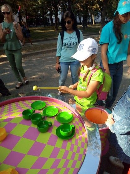 Дальше было «безумное чаепитие». Тут классическая рыбалка усложнялась тем, что чашку надо не только поймать, но и поставить на блюдце.