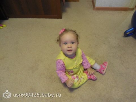 Юля во всю стоит, шагать боится пока. Хулиганит, везде лезет, всё ей везде надо, и в мусорное ведро за картофельной кожурой, и в унитаз, и коврик входной облизать.... В общем, дел много, еле успевает везде.