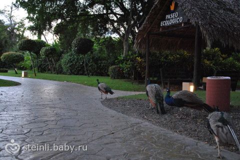 На территории отеля очень много павлинов с детками :)