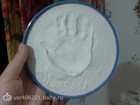 у нас такой, в год руку отпечатали, хотя хотела в месяц но она все время пальцы зажимала. там инструкция странная, пришлось чуть дольше ждать пока застынет немного и потом прижимать руку, иначе все размазывалось. а так ниче стоит в серванте
