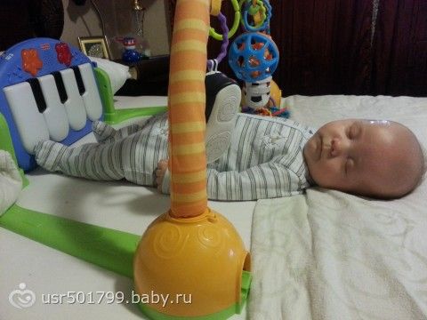 Я не увидела в вашем списке увлажнителя воздуха… Он вам будет очень нужен… Во первых, увлажнители не позволяют пыли и всем аллергенам лететь в воздухе ( я уверенна у вас чисто ) Во вторых, на 6 месяце жизни ребенка заканчиваются мамены антитела в организме карапуза и огромная вероятность появления первых соплей, лечить это явление нужно только при постоянной комнатной температуре +19+25 и влажность 60%.лекарств вам будет нельзя, да и еще прививки плановые. В таком воздухе инфекции не очень любят находиться. Ну и вообще малыши любят влагу, для кожи им комфортно ))) да и маме на кремы тратиться не надо… Морщин не будет… и еще, коврик- развивающий ( так его кажется называют ), только с пианино, нам малой играл с ним с месяца, играл с таким удовольствием что засыпал от игр тут же ))) фото прилогается)))+ 100 про увлажнитель тоже хотела написать и забыла. и коврик вот такой очень хороший, им можно рано начинать пользоваться — ножками будет брыкать по нему, у нас такой жебыл