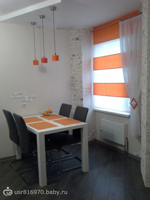 Гарнитур мой ты видела (белый верх, тёмный низ в стиле хай тек), а обеденная зона у меня во какая, поярче))))