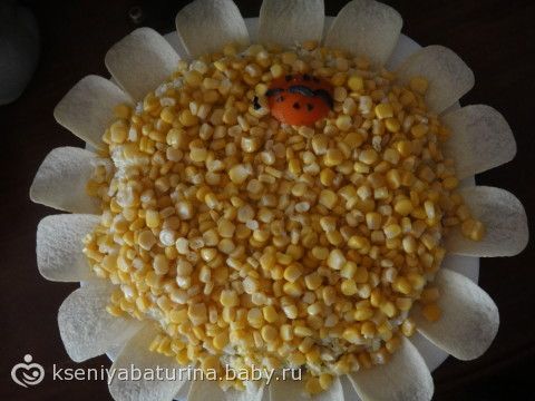 4. Салат выложить цветочком на блюдо слоями, каждый слой промазать майонезом: