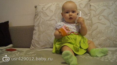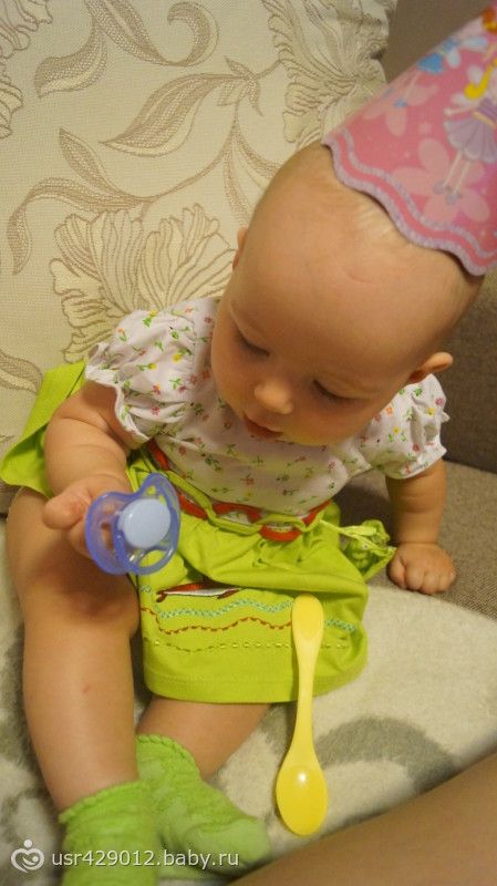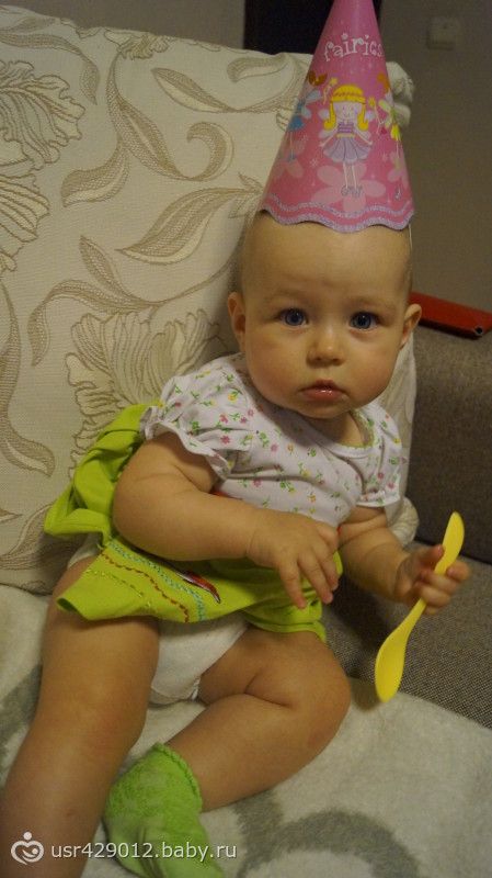 Да уж, время летит… Мы уже и садимся уже вовсю, на четвереньки встаем, уже даже вставать с опорой пытается, пока, правда, не очень получается. ну мы конечно отметили это дело, стол накрыли