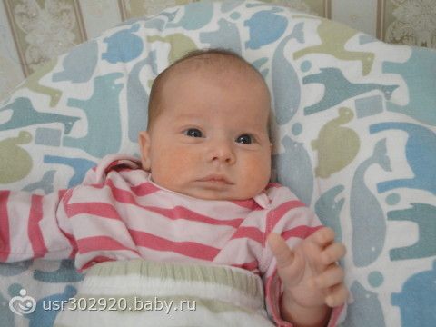 Начну с наших достижений: Вес на сегодняшний день у нас 3800, рост если честно точно не знаю, примерно 52-53 см. Головку держим, правда не очень устойчиво. Лежа на животике может поднять головку на секунд 10, а еще мы 4 раза перевернулись с живота на спину!!! Вот радости то было… Я позвала мужа показать как она головку держит лежа на животике, и как только он зашел, она взяла и перевернулась!!!!!