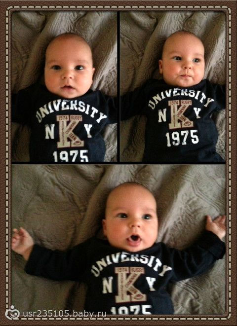 Мы вовсю болтаем, любимые наши слоги" Лао, Ао, УО,"(очень гласные любит), улыбаемся, пару раз смеялся, на развивающем коврике уже хватает и удерживает игрушки, пытается садиться, занимаемся на фитболе (катаю его взад-вперед и влево-вправо на спине и на животе -ему оч нравится!), а вот переворачиваться лениться, точнее наша тяжелая попа перевешивает и не дает нам это сделать)