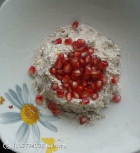 На завтрак был 2% творог с белым йогуртом, отрубями и горстью граната