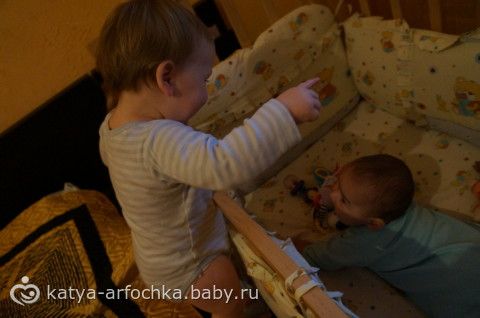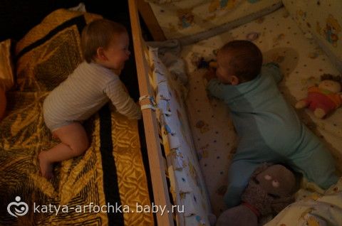Русланчика положили в кроватку к Санчо, радости не было предела у обоих)))