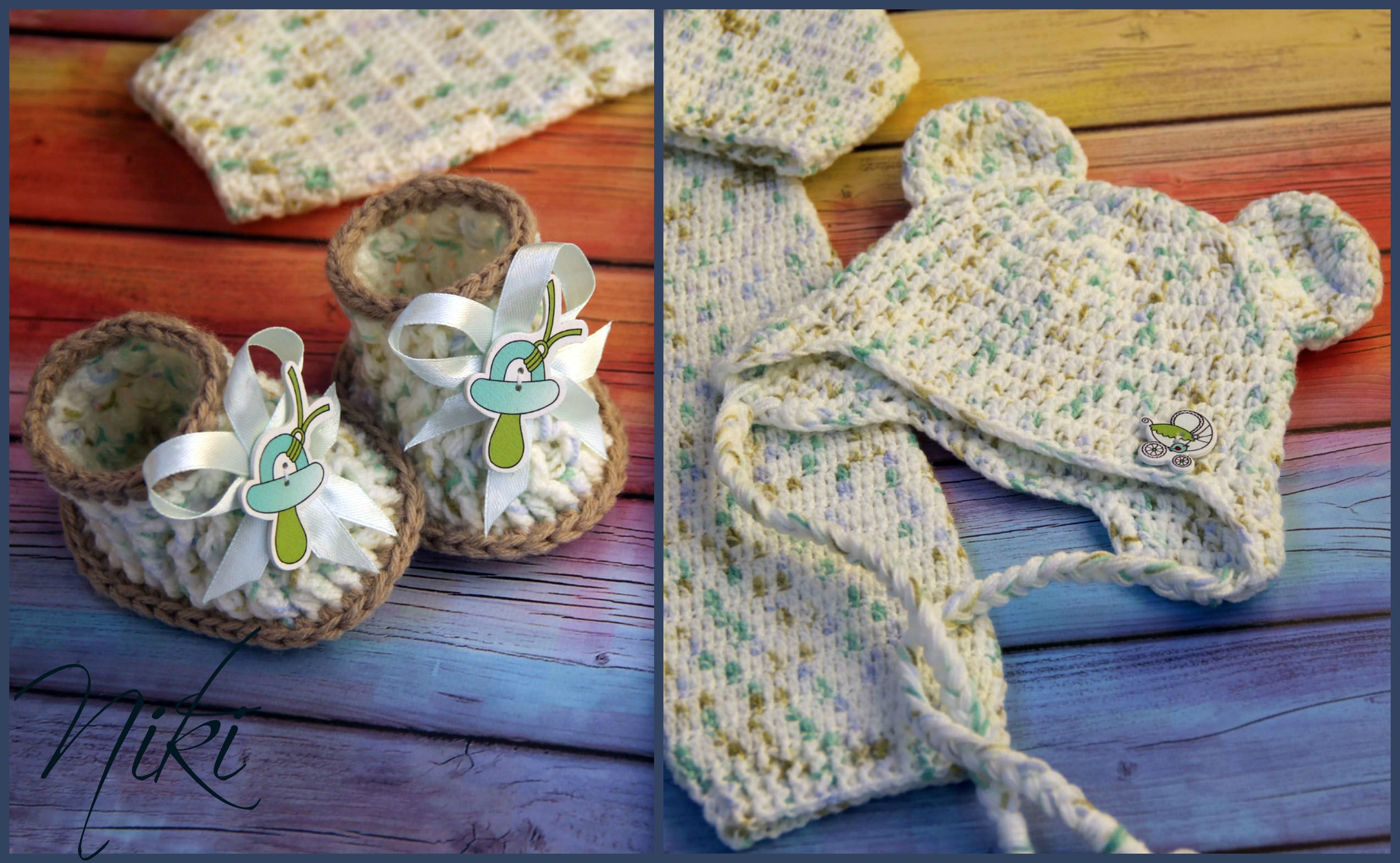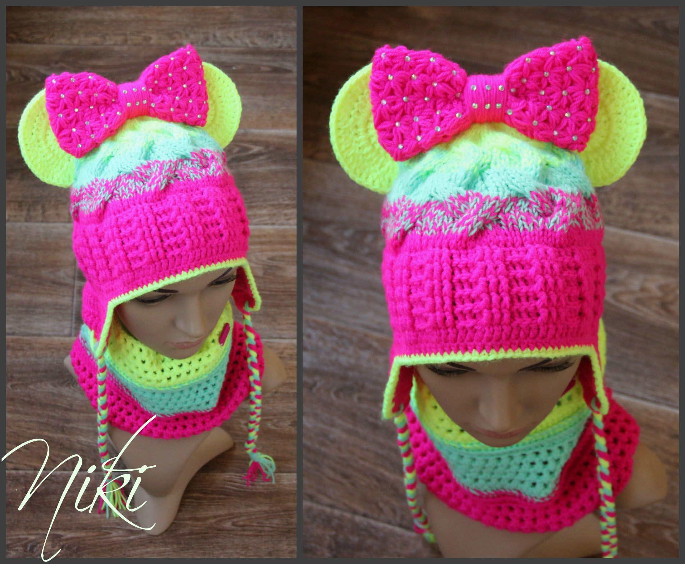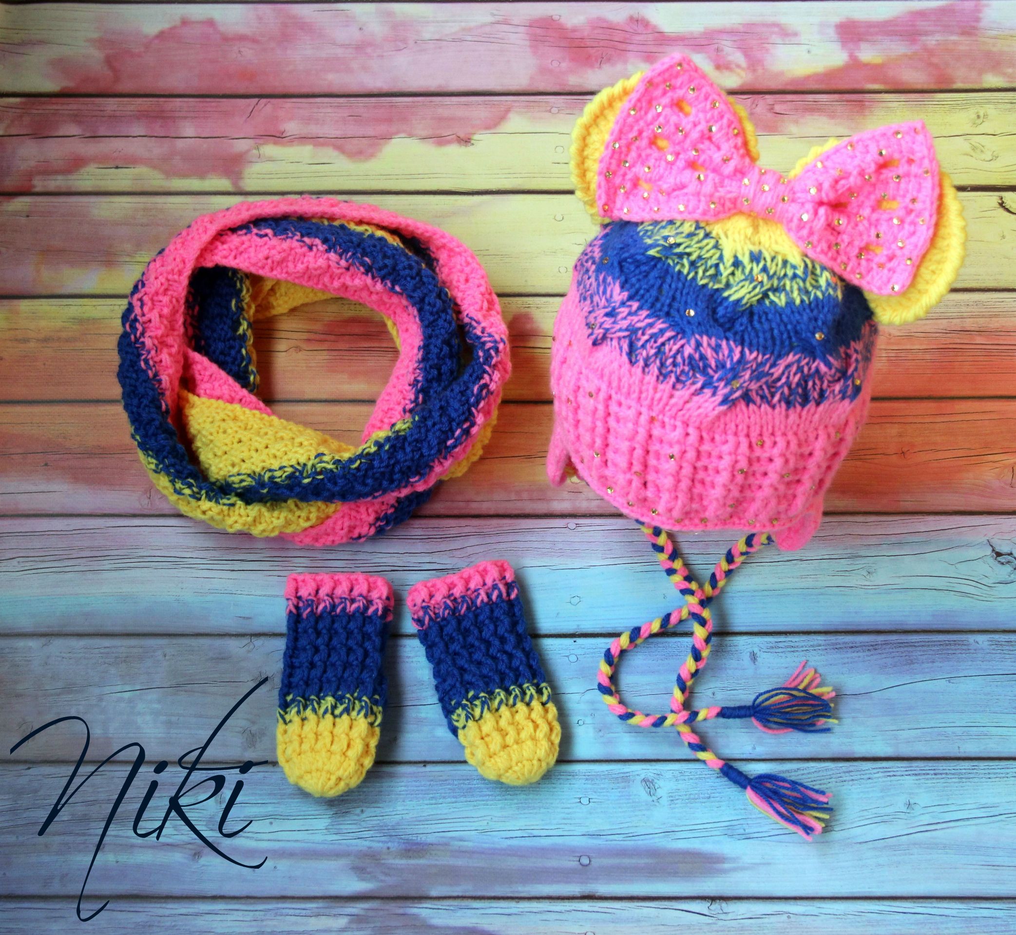 Не было меня два месяца и за это время очень много навязалось у меня шапочек и комплектов. 1) мои мишки
