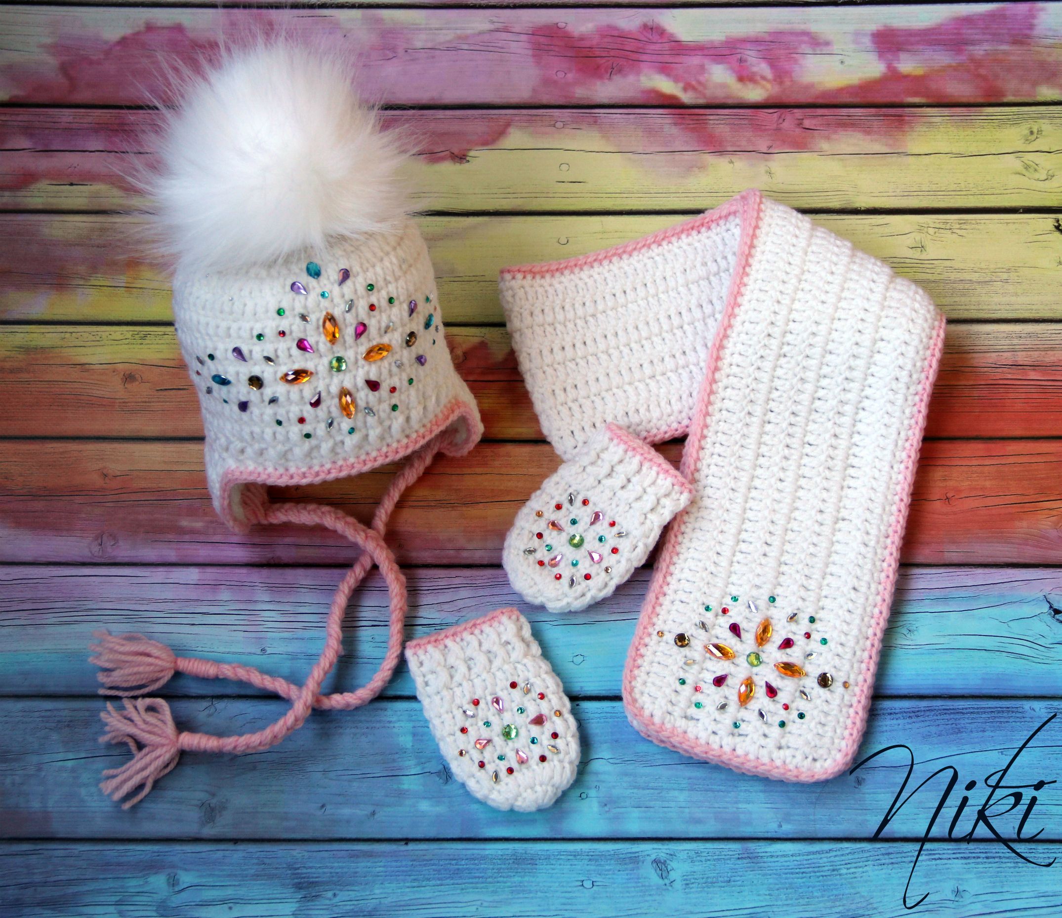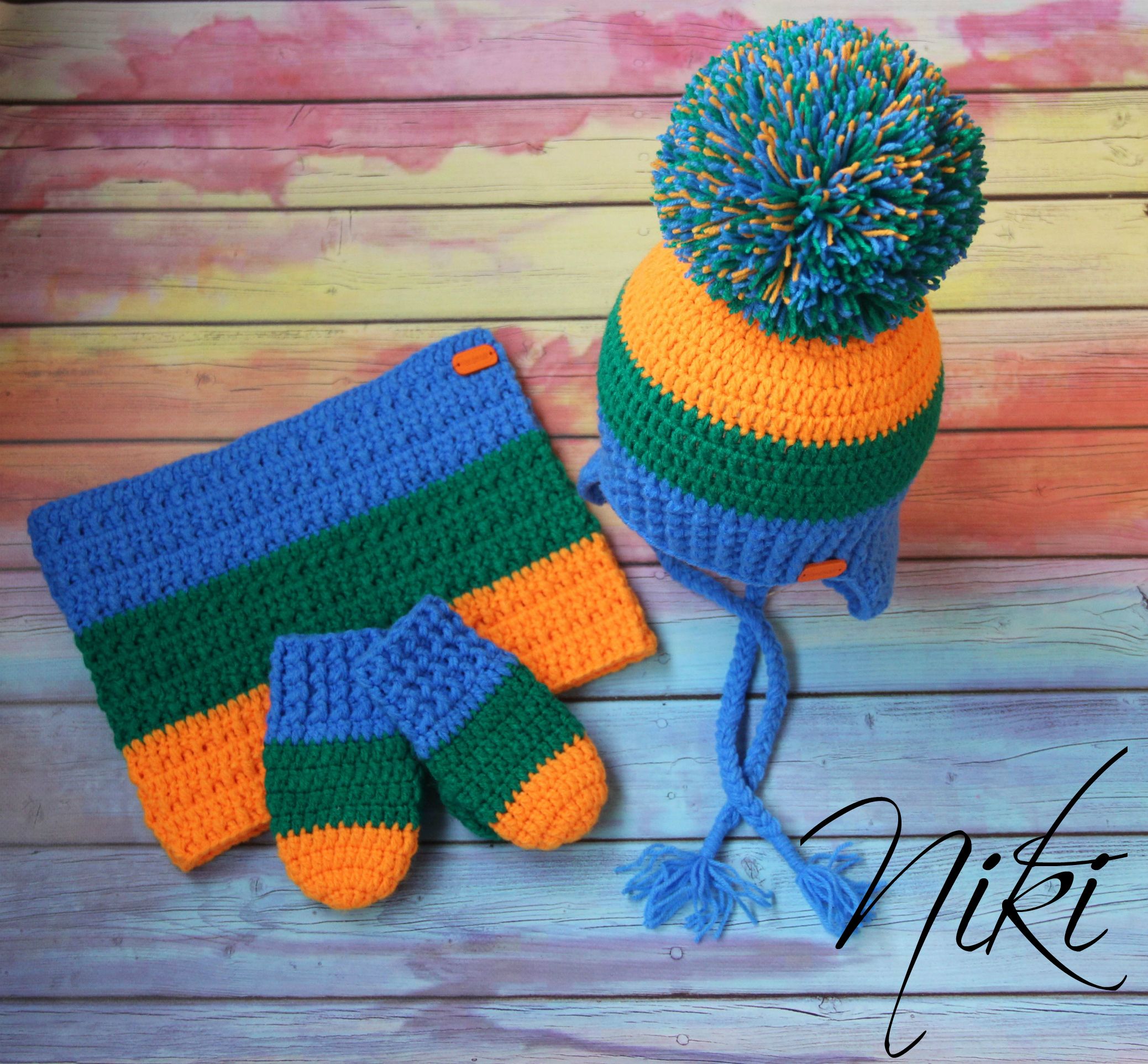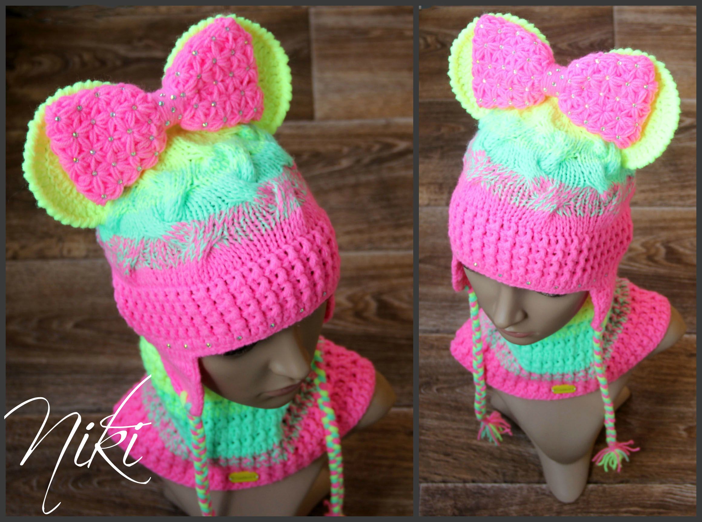 Не было меня два месяца и за это время очень много навязалось у меня шапочек и комплектов. 1) мои мишки