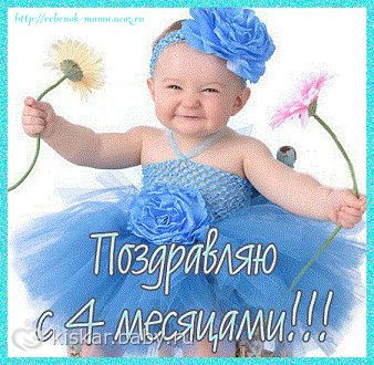 Вчера нам было 4 месяца!!! Аж не веритсяУлыбаемся, смеёмся и уже боимся щекотки под мышками!!! Переворачиваемся на бочок, а на животик пока не хотим! Головку держит хорошо, но вот со спины ещё не поднимает. Грызём погремушки, пальцы и всё что попадёт в руки