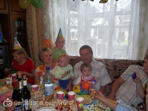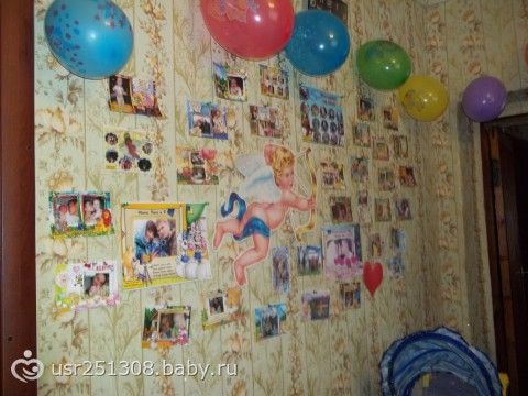 Гостей у нас было 15 человек))) Наготовили вкуснейших салатиков и закусок (спасибо моей маме и Нашей тете Ире), папа наш вытопил баню (гости наши любители попарится). Племянницы сервировали стол (совсем большие уже). Накануне вечером мы с мужем украсили наш зал, для празднования! Вместа паровозика, я сделала много тематических фото (первая встреча, купание, прогулки и т.д.) а дальше фото: