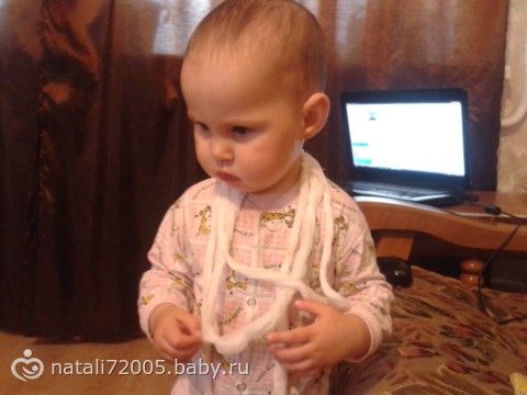 Это последний тренд нашей модницы — ожерелье из папиных трусов (ящик в шкафу удобно расположен :))