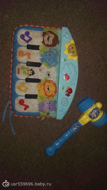 Fisher Price Zoo — там нажимаешь кнопку и центр по кругу едет и музыка не надоедливая :) у меня сейчас Жан там и машинку и паровозики катает )