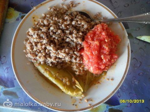 Обед: растерзанный фаршированный перчик сын вчера не доел на ужин, я решила доесть, немного гречки и чуток хреновины