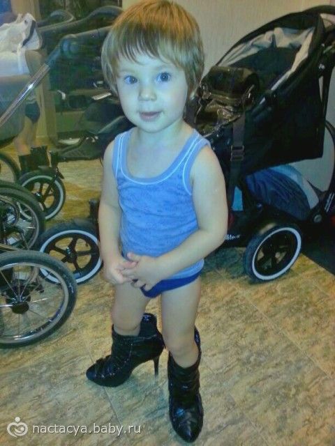 Какая прелесть! мой тож любитель походить был в моих на каблуках или платформе так забавно)))