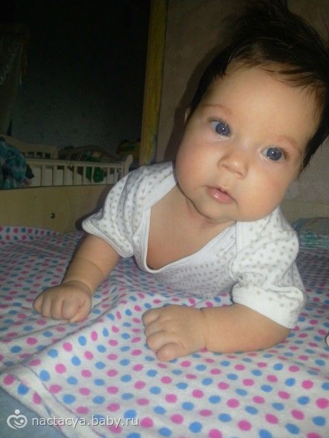 Тем временем Асечка у нас категорически противится лежать на животе — сразу толкается и переворачивается на спинку