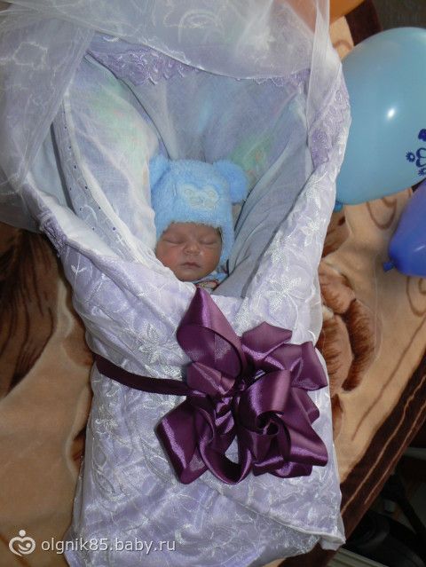 сестра выписывалась в одеяле теплом, ну и ленту голубую привязывали