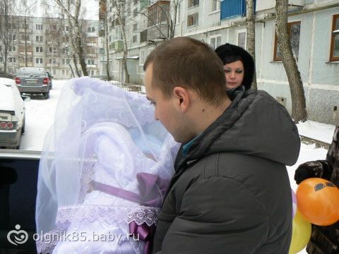 костюмчик, потом заворачивали в пелёнку, потом в одеяльце в пододеяльником, и в конверт на меху (правда искусственный мех был), на головке чепчик и шапочка вязаная на меху.