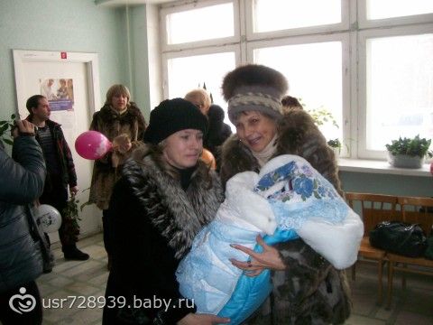 сестра выписывалась в одеяле теплом, ну и ленту голубую привязывали