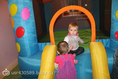 Недавно мы с нашими подружками Иришкой и ее дочкой Лилей решили сходить в детское кафе, Машу и медведи)) Вот решила с вами поделиться, может кто еще свой досуг разнообразит)) Нам там понравилось, кафешка небольшая, но достаточно уютная, по телеку Машу всемилюбимую крутят, небольшая зона для детишек, там надувная горка, бассейн сухой и куча игрушек. и рядом столики для мам-пап и покушать. у нас особо покушать не получилось, так что вкусно — не вкусно сказать не могу)) мы с детьми лазили среди игрушек и играли, они еще маловаты, чтобы там одни самодостаточно играть)) для меня единственной проблемой стало то, что Варя все в рот тащит, а игрушки понятное дело там никто наверное не моет. старалась отбирать, но не особо получалось)) ну и фотки)