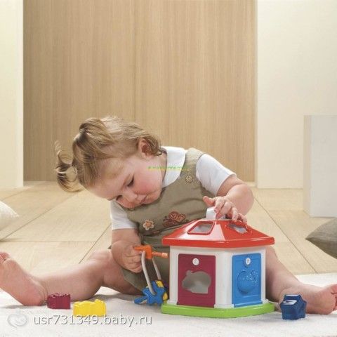 лошадка качалка большая, палатка (две палатки и между ними туннель), большой набор кубиков, музыкальный слон — из хобота вылетают шарики под музыку и залетают внутрь, развивающий столик, домик-сортер, музыкальный жук ездящий, куклы