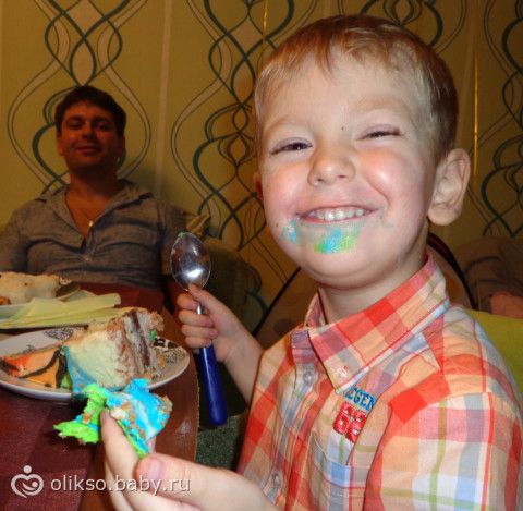 Поздравляем. старший сидит на коленях и говорит ой мама мальчик как чушка тортиком испачкался ой какой он красавчик!