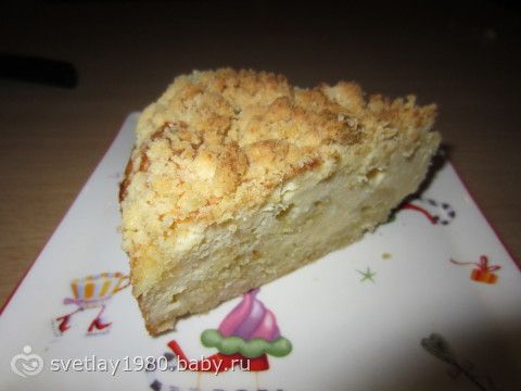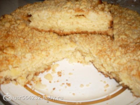 Холодное сливочное масло натереть на терке. Добавить к маслу муку, соду погашенную уксусом или лимонным соком, 2 столовые ложки сахара, щепотку соли и растереть руками в крошку. Размешать оставшийся сахар, творог и яйца для начинки, не взбивая. Можно добавить щепотку ванилина. На дно смазанной маслом формы выложить 2/3 части крошки. Сверху вылить творожно-яичную смесь. Затем опять оставшуюся крошку. Выпекать в разогретой духовке при температуре 180 градусов 30-40 минут в зависимости от размера формы. Нарезать охлажденной.