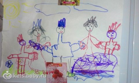 странно. она у вас второй ребенок, а рисовала сразу на четверых и +1 еще проектируемая «на сладкое»