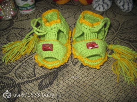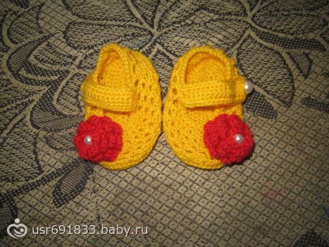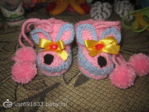 А вот такие пинетки связала подруге. Скоро у нее родится дочка.