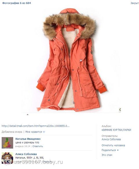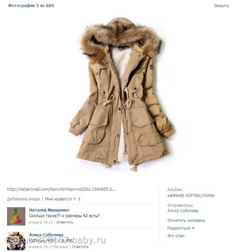 Как же меня бесят люди которые покупают в китае шмотки и продают в 2 раза дороже!!! Хотела заказать у этой женщины куртку вот эту