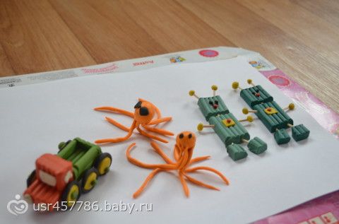 это осьминог, робот (мой и сына) и машина (одна на двоих). Детство вспомнила, сын доволен, на сегодня лепки хватит))