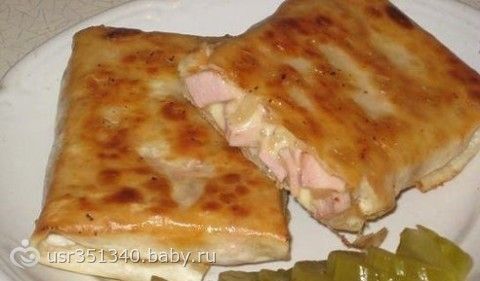 Ингредиенты: -лаваш тонкий 1 шт -колбаса вареная 50 г или ветчина -лук репчатый 1 шт -сыр 20 г -майонез по вкусу -масло растительное 1 ст. л. Приготовление: Шаг 1 Лук и колбасу порезать кубиками. Обжарить на растительном масле.Добавить тертый на крупную терку сыр и майонез.Перемешать Шаг 2 Лаваш разрезать на 4 квадрата. В каждый положить начинку. Свернуть конвертиком. Шаг 3 Обжарить на растительном масле до золотистой корочки. Приятного аппетита