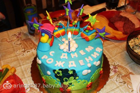 Мы делали медовик со сметанным кремом, оформляли кремом же, сажали фигурки из мастики — их в еду не давала.