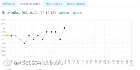Всем приветик))Дорогие подружки, если кто-то смыслит в графике БТ, подскажите плиз.У меня сегодня по идеи должна быть О, но почему-то температура поднялась...