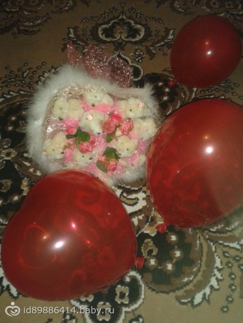 . Муж был приятно удивлён и подарил мне букетик из мишек.