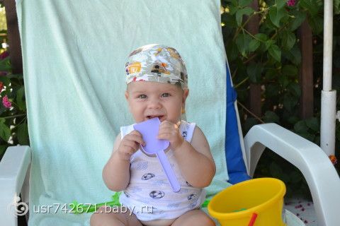 Ну конечно куча новостей за это время произошло. Сейчас нам 9 месяцев, весим 8900гр, рост 74 см. Сам умеет садиться и на руки сидя опираться, так и доползает на попе до нужной ему игрушки. Мы ДО СИХ ПОР не ползаем, не встаем и тем более не ходим. Но я не отчаиваюсь, значит наше время еще не пришло, когда захочет сам пойдет. У нас 4 зуба))) (два нижних и два верхних), остальных пока не видно видимо пауза в росте зубов настала.