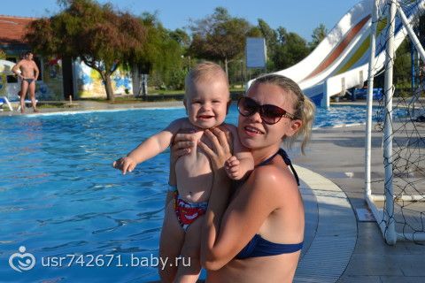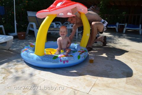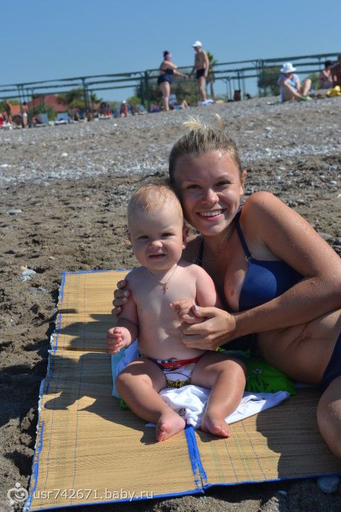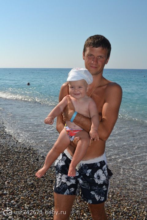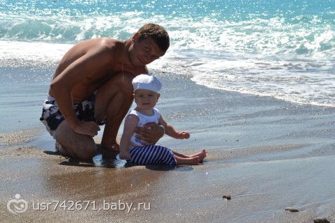 в конце сентября мы съездили всей семьей в Турцию. Отдохнули, загорели и радовались жизни все 9 дней пока Ярик не заболел((( Он поначалу боялся моря, а потом ничего, понравилось на волнах прыгать и купаться)))) Там видимо жарко было сильно поэтому прикорм мы почти не кушали, один раз в день немного пюрешки если поест и то счастье было а так все время титя., зато дома начали кушать и даже каши!!!