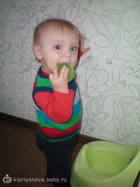 -пытаюсь его научить держать ложку, сам пьет из чашки (если есть настроение))