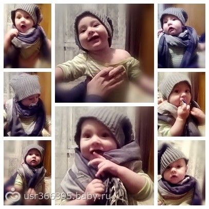 Это шапка и шарф не его)))а подруги, просто шутили)))А комбез у нас давно уже, он в нем не довольный, поэтому фото еще нет)