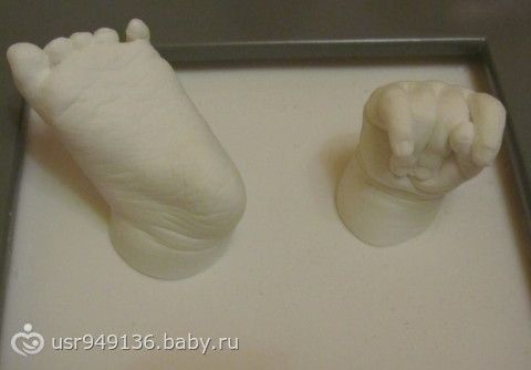 Покупали ещё при рождении набор для слепков Бебиарт, но всё руки не доходили сделать. Наконец то на 3 месяца доченьки получилось, правда не с первого раза, смесь очень быстро застывает, поэтому и не успели, а потом всё получилось отлично! Моя козюлька умудрилась скрутить дулю!!!)) Смешно потом будет смотреть когда вырастет, такая память!!!