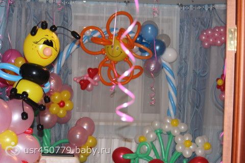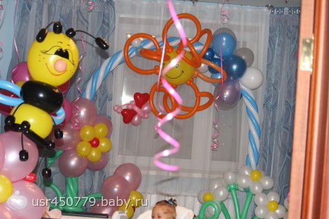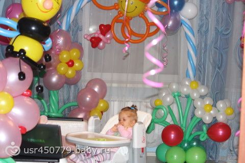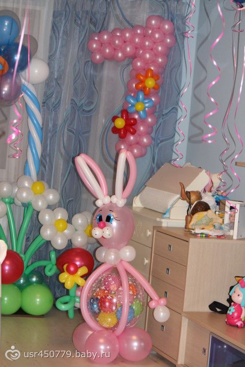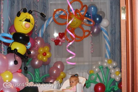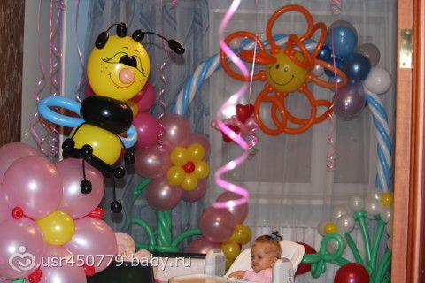 Дороговато конечно, 7350 за всё (арка, единичка, зайчик, цветок с пчелкой и кучу воздушных шариков)